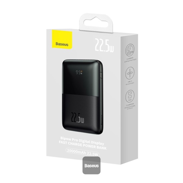 Acumulator extern Baseus Bipow Pro 20000mAh, 2x USB-A, 1x USB-C, Incarcare rapida, cablu USB-A la USB-C inclus, 22.5 W, Negru