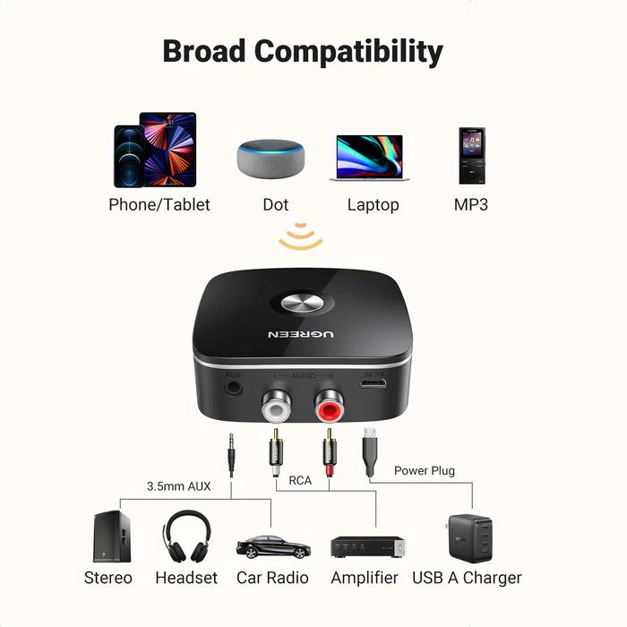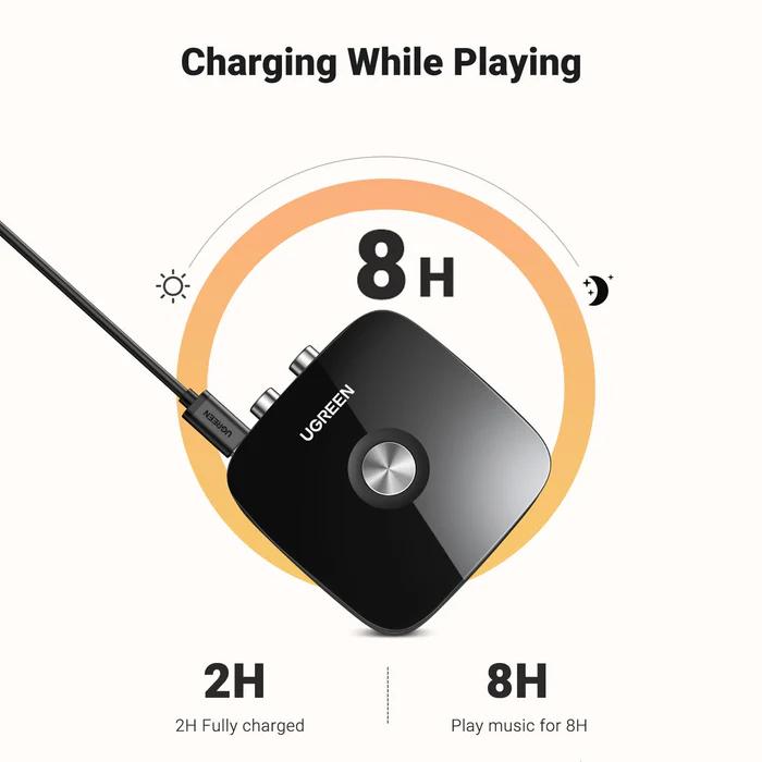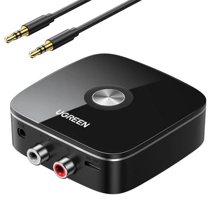 ADAPTOR Bluetooth audio Ugreen, „CM123” acumulator inclus, 1 x jack 3.5mm, 2xRCA output, convertor audio wireless,versiune bluetooth 5.0 A2DP, negru „30445” (timbru verde 0.18 lei) – 6957303834457