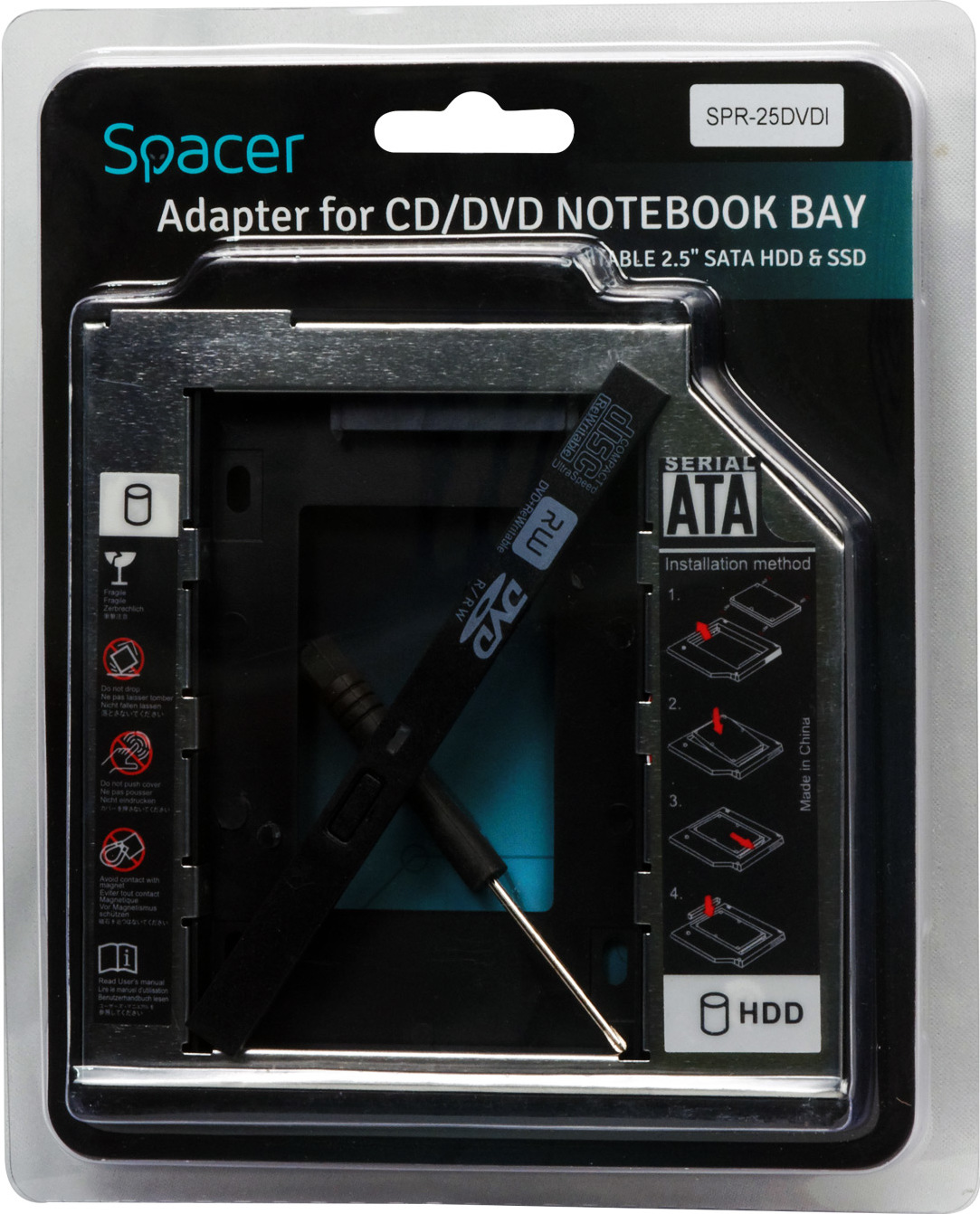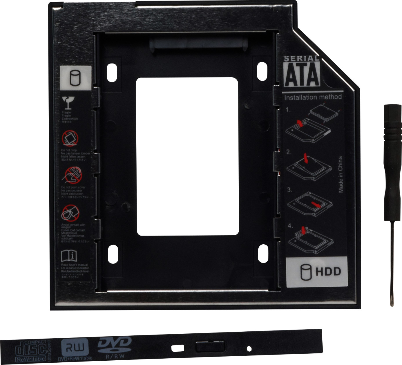 Rack intern SPACER, tip caddy 9.5mm, 5.25 inch la 2.5 inch, S-ATA, interfata PC S-ATA, metal, negru,