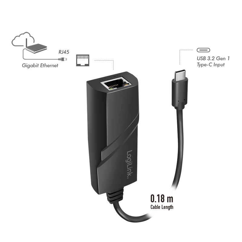 Adaptor placa de retea LOGILINK UA0238A, USB 3.2 Gen1 USB-C, port RJ-45, 1000 Mbps