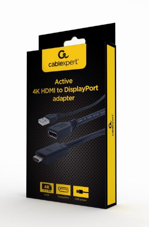 adaptor video Gembird, HDMI (T) la DisplayPort (M), rezolutie maxima 4K la 30Hz, Negru, A-HDMIM-DPF-01