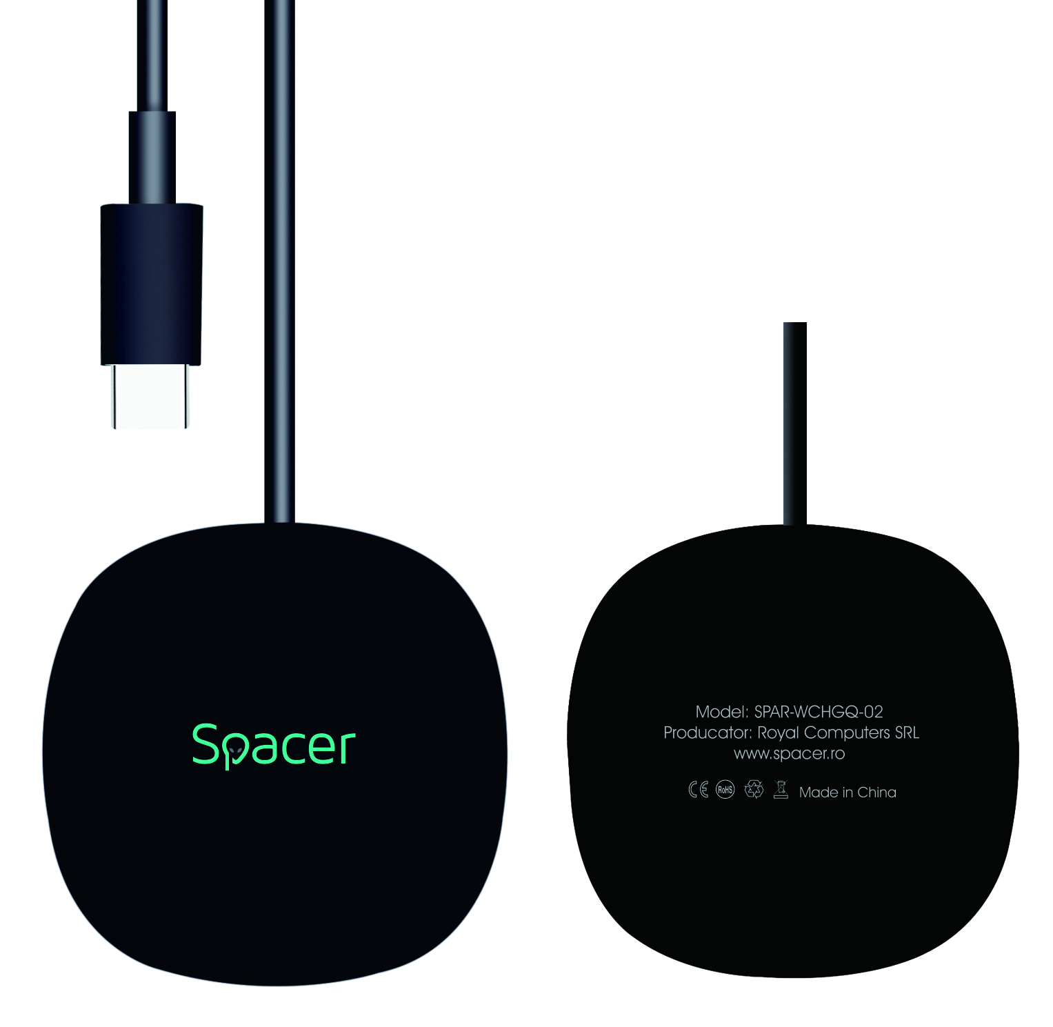 Incarcator wireless SPACER, Quick Charge 15W Qi, conector Type-C, rol de stand prin prindere magnetica, negru