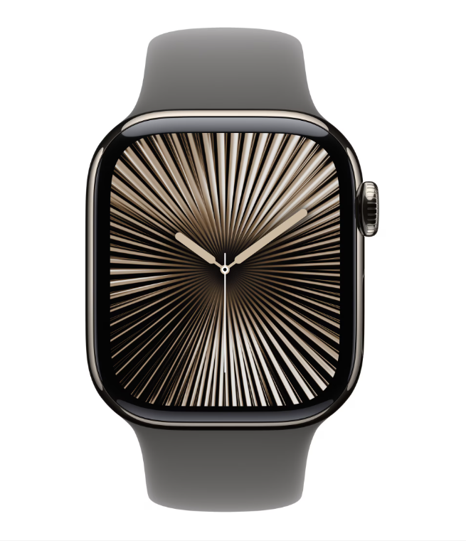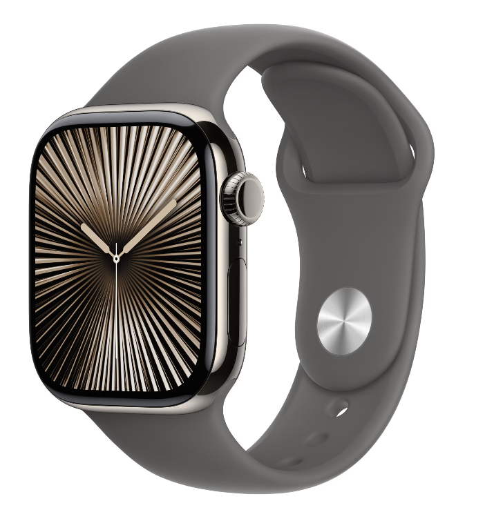 Apple Watch Series 10 GPS + Cellular 42mm Natural Titanium Case with Stone Grey Sport Band – M/L