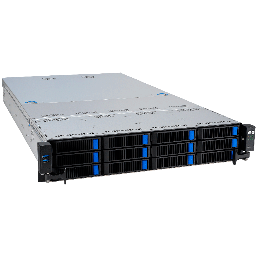 Asus RS521A-E12-RS12U AMD EPYC 9005 single-processor 2U server supports up to 24 DIMM, 12 NVMe, 5xPCIe 5.0 slots, 2xM.2, OCP 3.0, 2xdual-slot GPUs, and ASUS ASMB11-iKVM