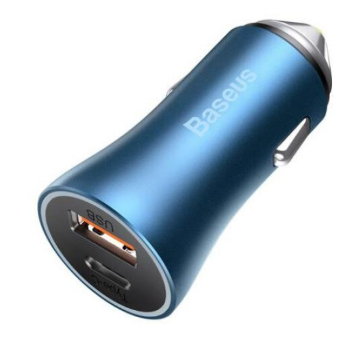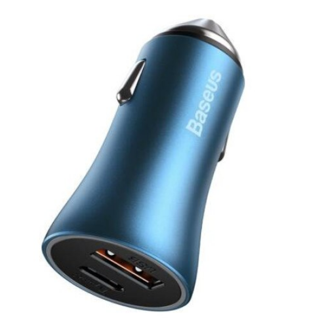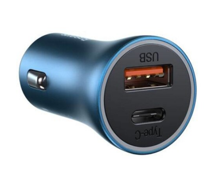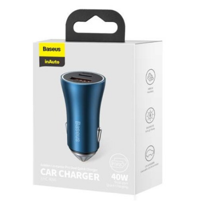 Baseus Incarcator Auto Golden Contactor Pro Dual Quick Charger USB si Type-C Blue (PD, 40W)