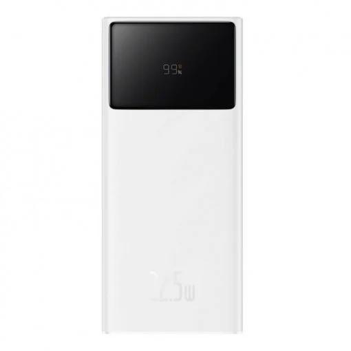 Baterie externa Baseus Star-Lord, capacitate 30.000 mAh, 2 porturi iesire USB 2.0, 1 port USB-C, voltaj iesire 9 V, amperaj 3 A, functii display digital pentru nivel baterie, alb
