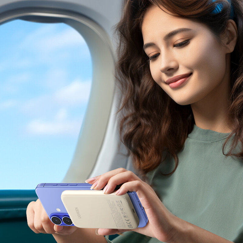 Baterie externa Ugreen Magnetic 5.000 mAh, Wireless, PD 15W, Qi 7.5W, USB-C, compatibila MagSafe, Bej