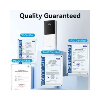 Baterie externa, VENTION, 10000mAh, 22.5W PD Fast Charge, 2 x USB/1 x USB Type-C interfata, 1 x USB Type-C/1x Lightning Cable, Digital display, Alb