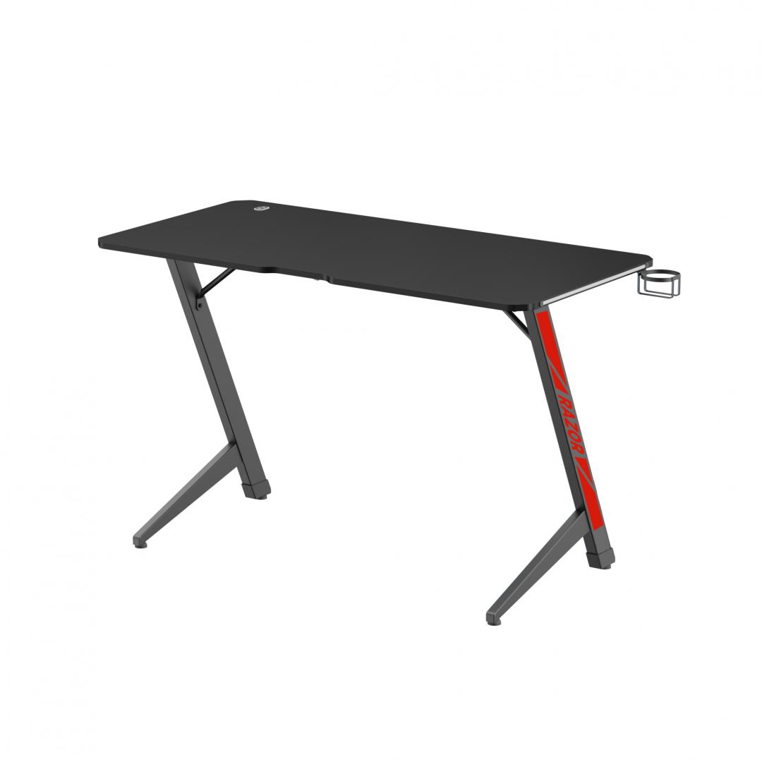 BIROU GAMING SERIOUX RAZOR Material: MDF și melamină, plastic, oțel, Dimensiuni 1200x600x750mm, Dimensiuni blat (LxlxA) 1200x600x15mm, Greutate suportata 75kg, Iluminare ambientală LED cu gradient multicolor, Culoare: Negru și negru mat, negru și roșu mat