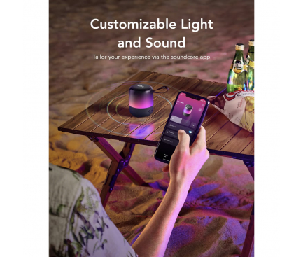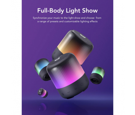 Boxa portabila wireless Anker SoundCore Glow Mini, 8W, Autonomie 12H, Sunet 360°, IP67, Negru