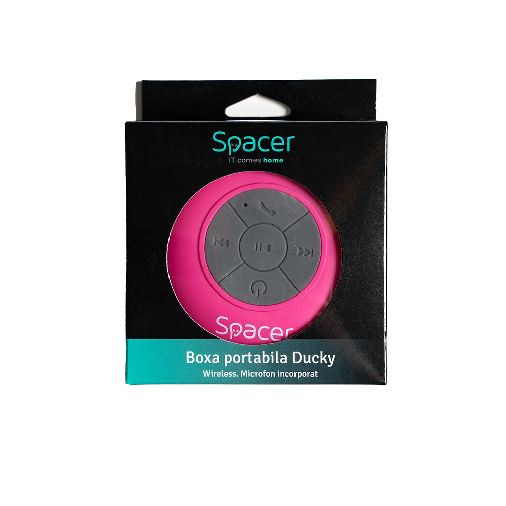 Boxa Spacer DUCKY-PNK portabila, 3W RMS, control volum, acumulator 300mAh, microfon incorporat, incarcare USB, waterproof, roz