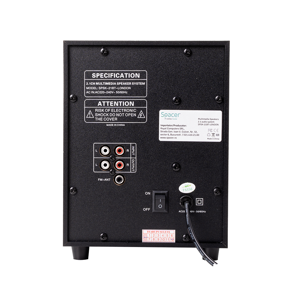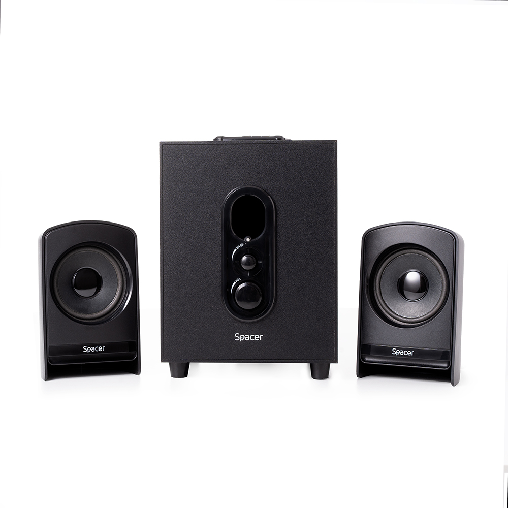 Boxe Spacer 2.1, 20W RMS (2 x 5W + 10W), alimentare 220V, conectori Bluetooth, USB, Jack 3.5mm, Radio FM, RCA, negru