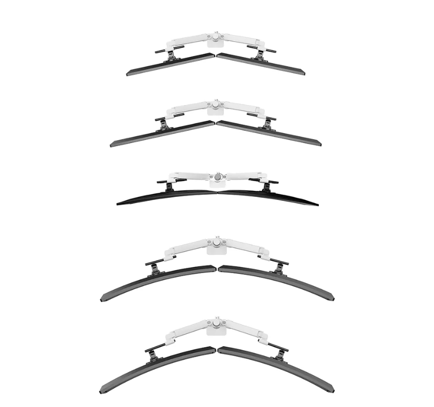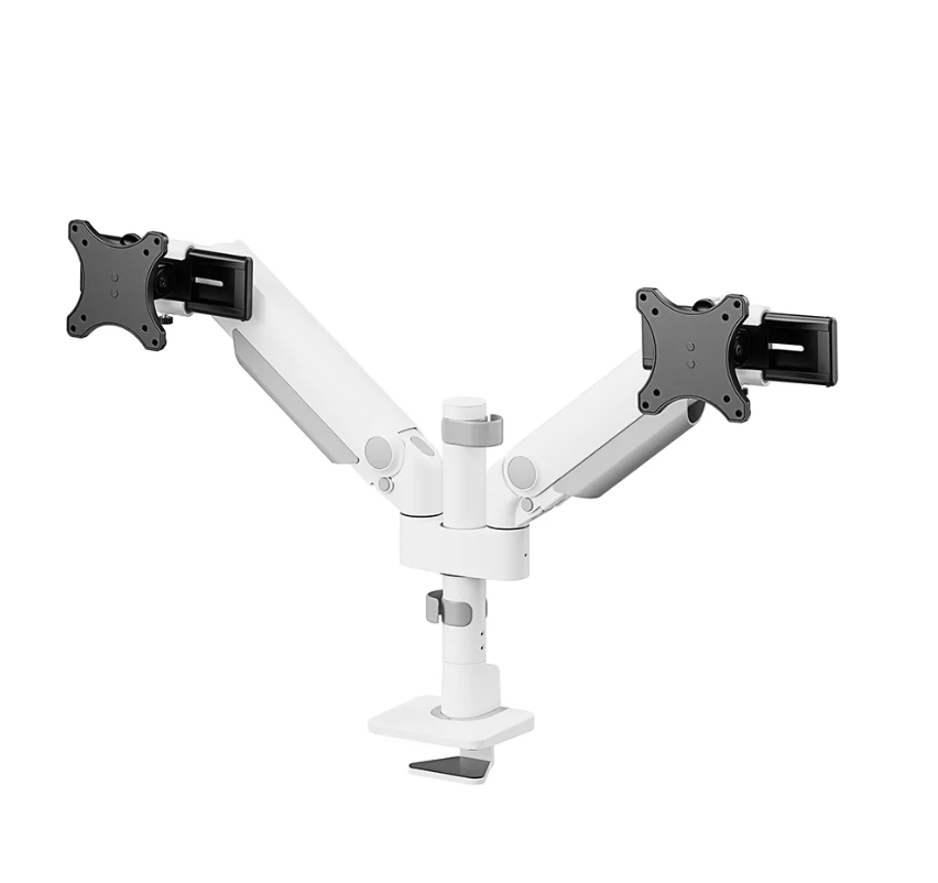Brat dublu monitor Neomounts DS65S-950WH2; pentru display-uri cu diagonale 24″-34″, sistem de prindere VESA 75×75~100×100, greutate maxima suportata 11kg – per ecran, full motion, tilt +70°, swivel 90°, rotate 90°; gas spring; culoare alb. Garantie 5 ani