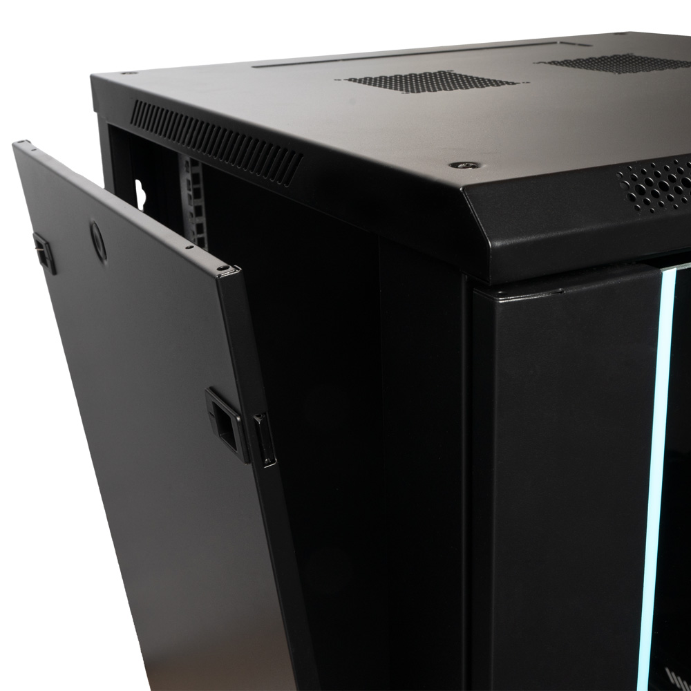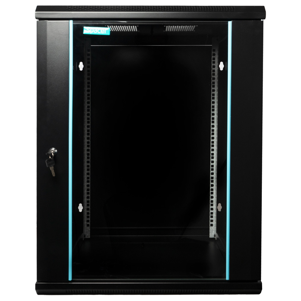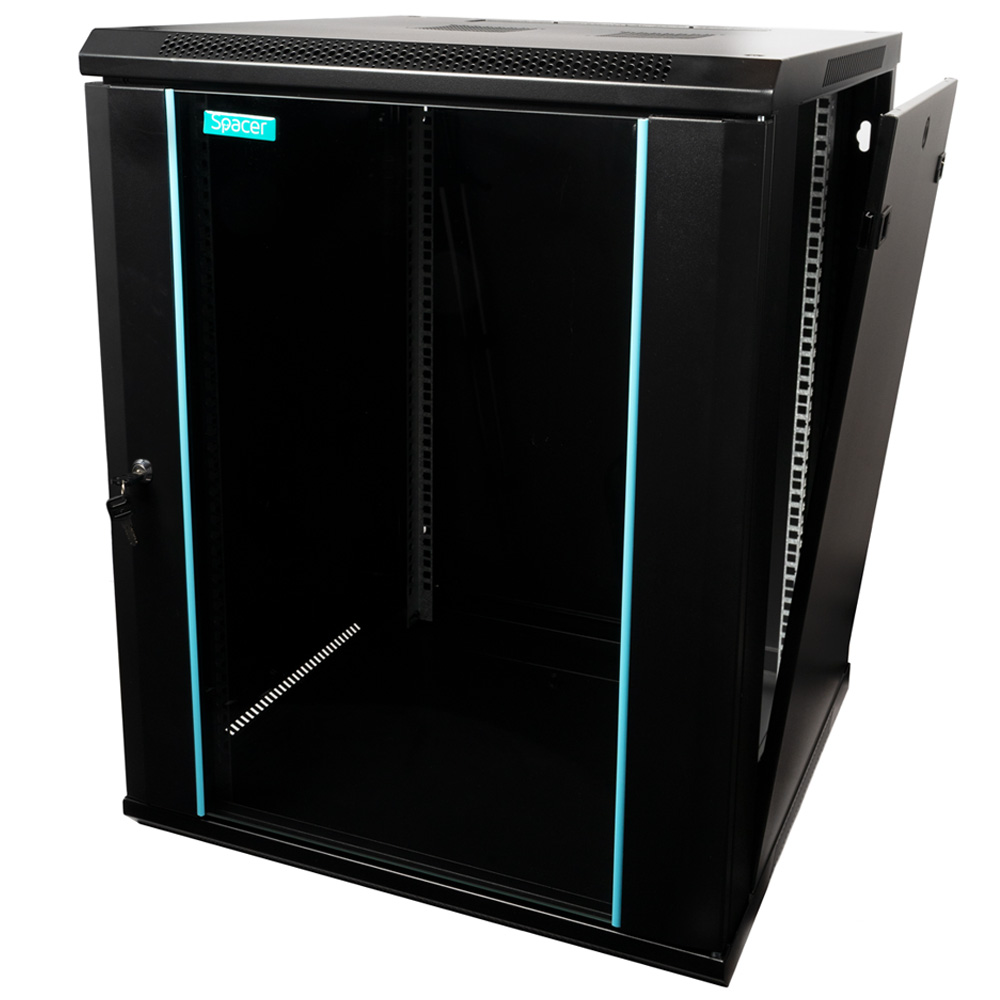 CABINET 19″ SPACER 15U 600x600mm, fixare pe perete, Flatpack (dezasamblat), Black, usa sticla cu blocare, panouri detasabile, otel 1.5mm, sarcina maxima 60Kg