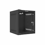 Dulap rack 10″ perete 6U / 280×310 (flat pack) cu ușă din sticlă, negru