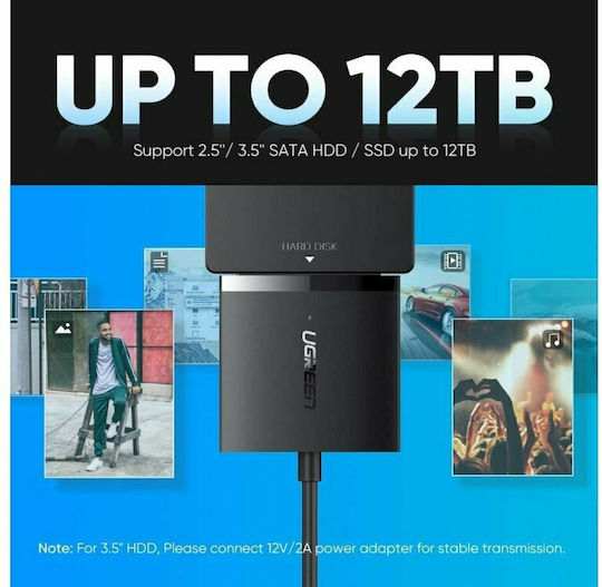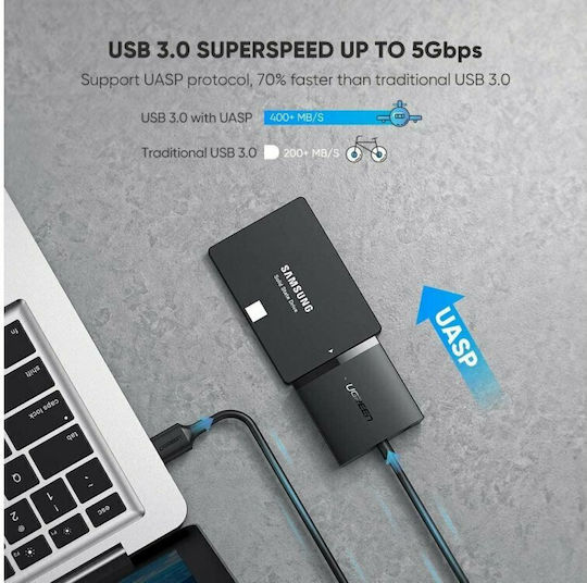 Cablu Adaptor CM257 60561, USB 3.0 la SATA Ugreen, pentru HDD/SSD 2.5/3.5 inch, Negru