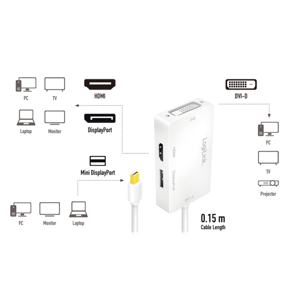 Cablu adaptor Mini DisplayPort (T) – HDMI+DVI+DisplayPort (M), LogiLink CV0045A