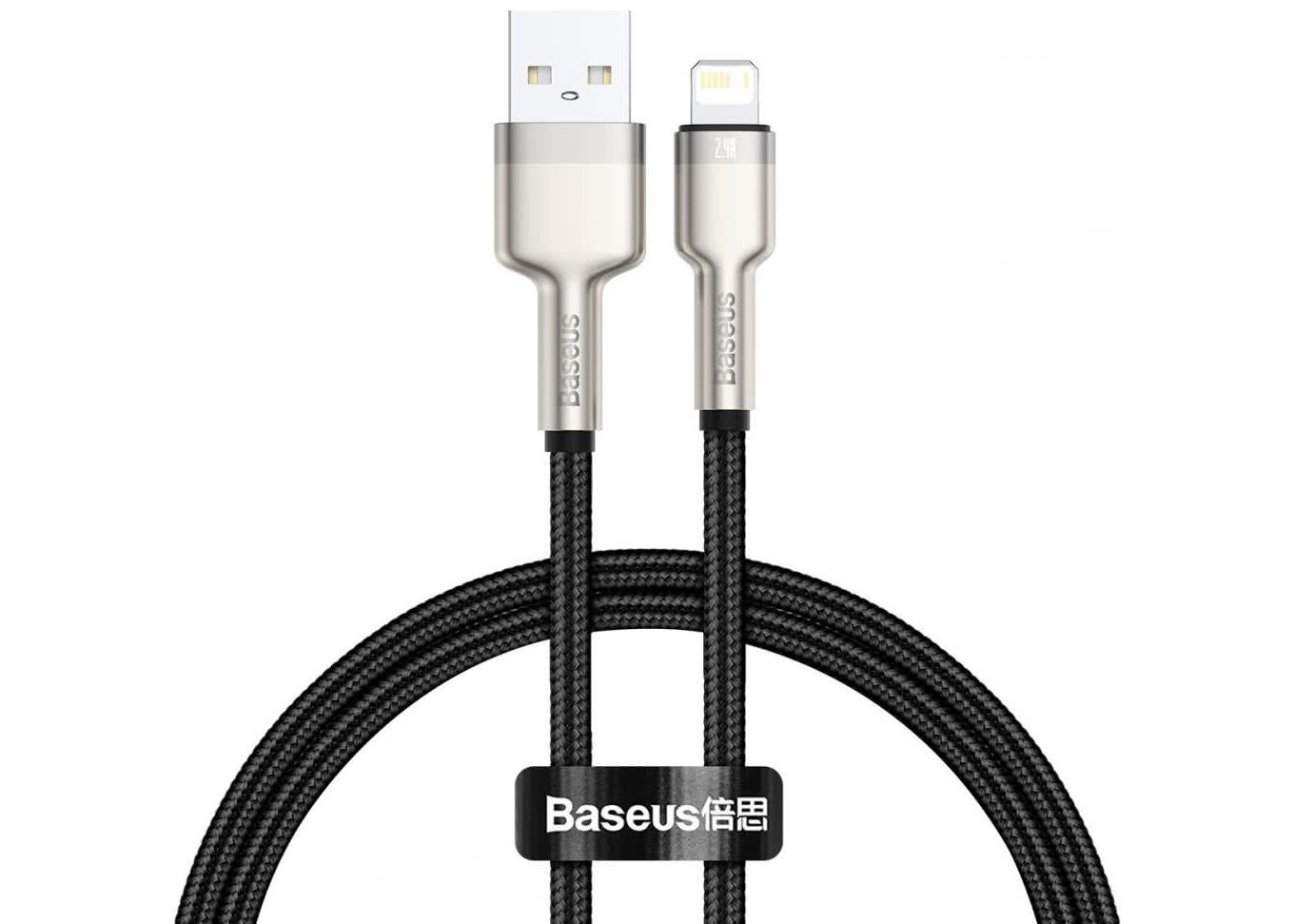 Cablu alimentare si date Baseus Cafule Metal, Fast Charging Data Cable pentru smartphone, USB la Lightning Iphone 2.4A, braided, 0.25m, negru