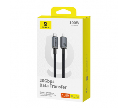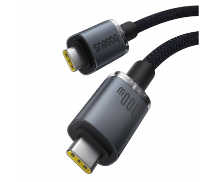CABLU alimentare si date Baseus Crystal Shine, Fast Charging Data Cable pt. smartphone, thunderbolt, USB3.2 Type-C la USB3.2 Type-C 100W, video 4K@60Hz 1.5m, braided, negru „P10318204111-00” (timbru verde 0.18 lei) – 6932172657994