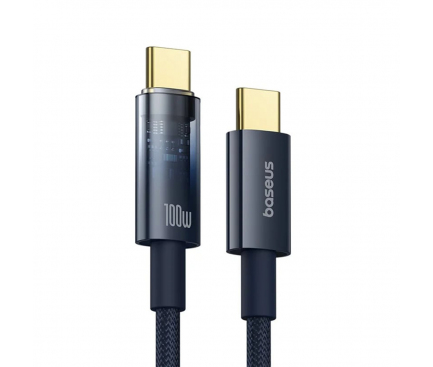 Cablu alimentare si date Baseus Explorer, Fast Charging, USB Type-C la USB Type-C 100W, oprire automata incarcare, braided, 2m, albastru