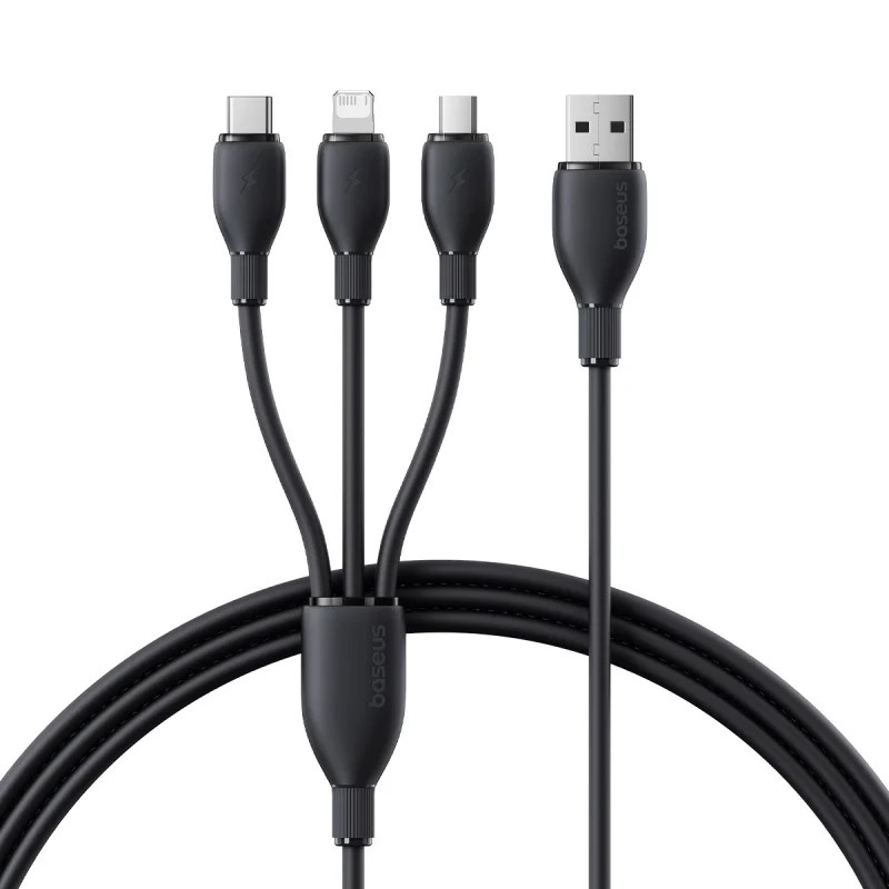 Cablu alimentare si date Baseus Ultra-Fast One-for-three Retractable, pt smartphone,USB la Micro-USB+Lightning+USB Type-C 3.5A, 1.3m, negru