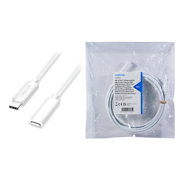 Cablu alimentare si date LOGILINK, pentru smartphone, USB 2.0, USB Type-C (T) la USB Type-C (M), 3m, PD 60W, 2 x ecranat, plastic, alb