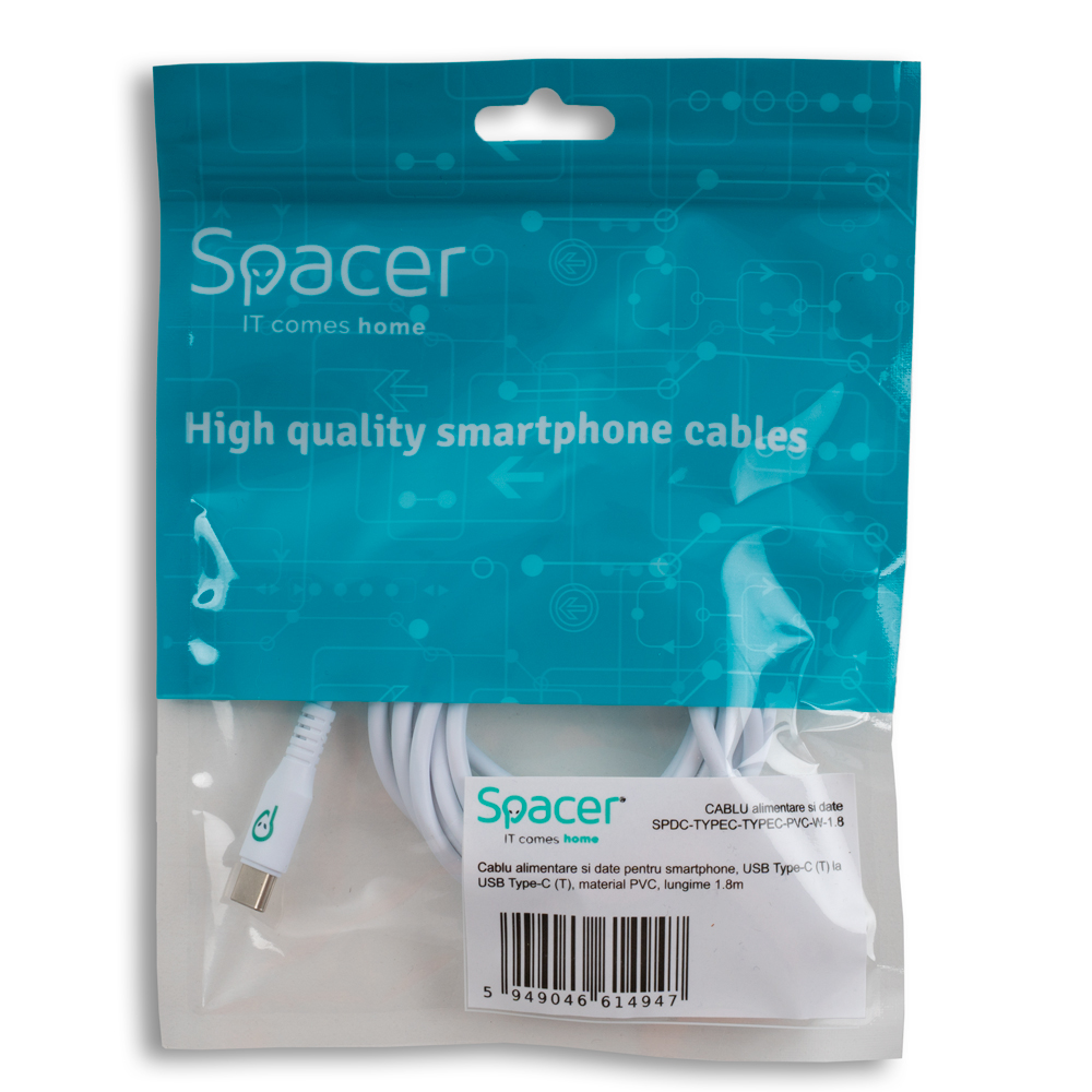 Cablu alimentare si date SPACER, pentru smartphone, USB Type-C (T) la USB Type-C(T), PVC, ambalaj punga, 1.8m