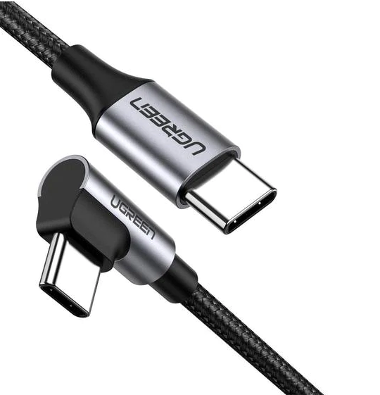 CABLU alimentare si date Ugreen, „US255”, Fast Charging Data Cable pt. smartphone, USB Type-C la USB Type-C 60W/3A Angled 90°, braided, 2m, gri „50125” (timbru verde 0.08 lei) – 6957303851256