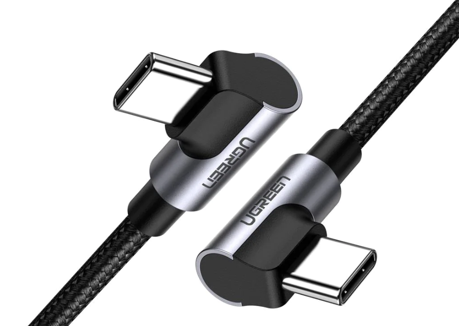CABLU alimentare si date Ugreen, „US323”, Fast Charging Data Cable pt. smartphone, USB Type-C la USB Type-C 60W/3A Angled 90°, braided, 1m, negru „70529” (timbru verde 0.08 lei) – 6957303875290