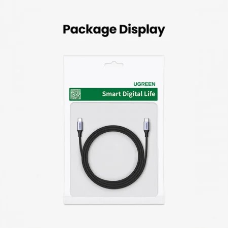 CABLU alimentare si date Ugreen, „US535”, Fast Charging Data Cable pt. smartphone, USB Type-C la USB Type-C 240W, aluminiu braided, 2m, gri „90440” (timbru verde 0.08 lei) – 6957303894406