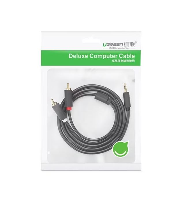 Cablu audio, Ugreen 3,5mm mini jack (tip feminin) – 2RCA, 25cm, gri