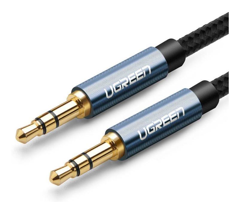 CABLU audio Ugreen, „AV112” stereo (3.5 mm jack T/T), conectori auriti, 1m, braided, albastru „10685” (timbru verde 0.18 lei) – 6957303816859