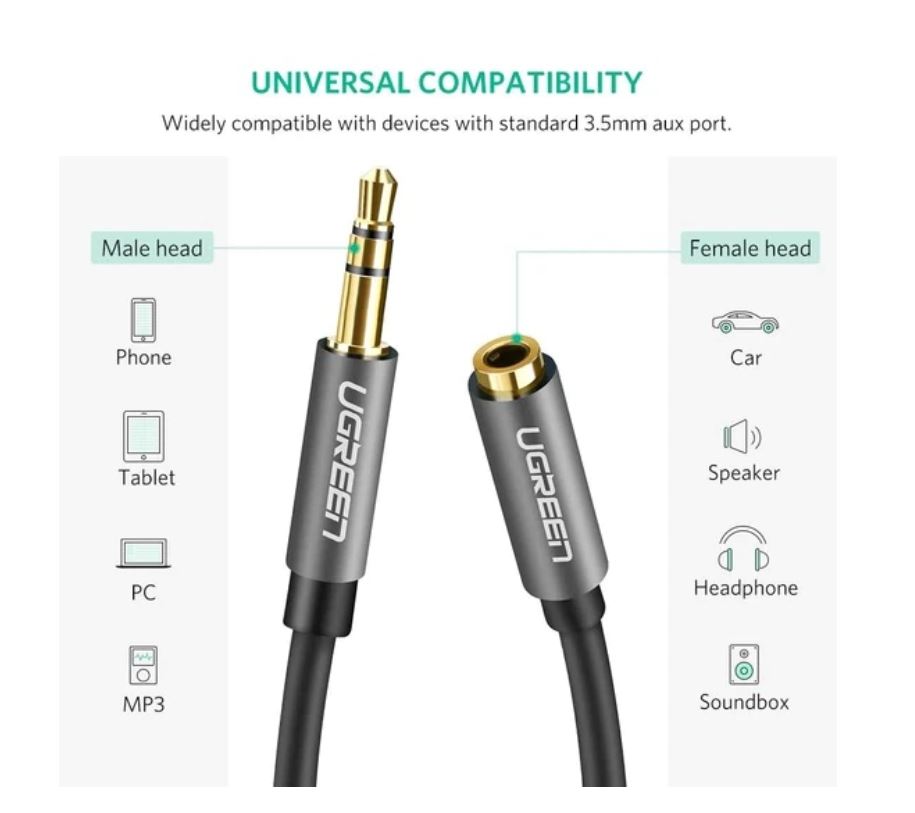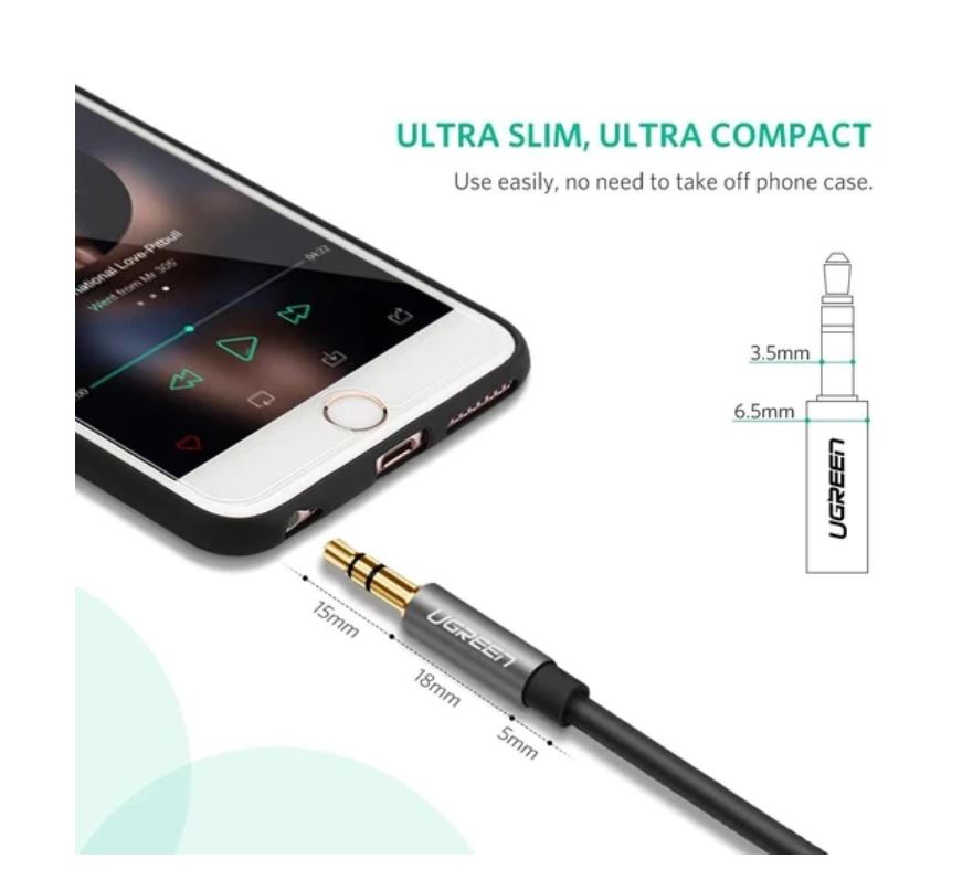 CABLU audio Ugreen, „AV118” stereo 3.5 mm jack (T) la 3.5 mm jack (M), 3m, conectori auriti, negru „10595” (timbru verde 0.18 lei) – 6957303815951
