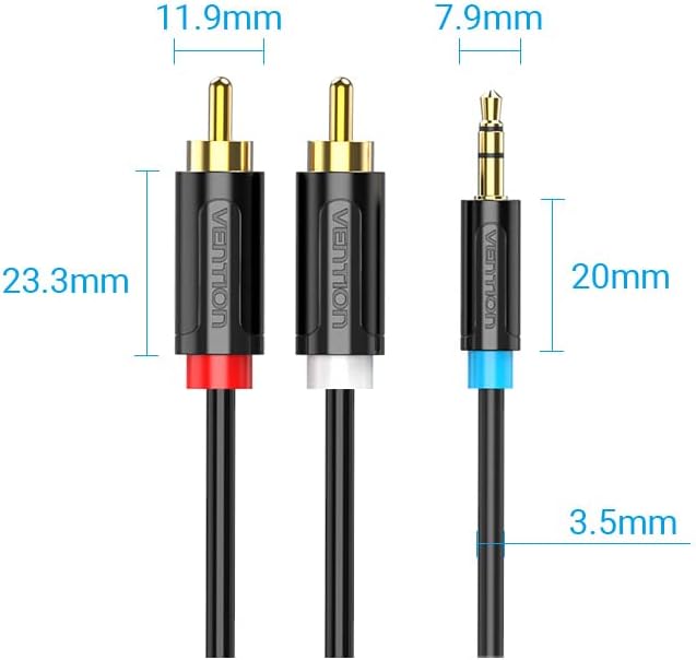 Cablu audio Vention, Jack 3.5mm (T) la 2 x RCA (T), 1m, conectori auriti, PVC, negru, „BCLBF”