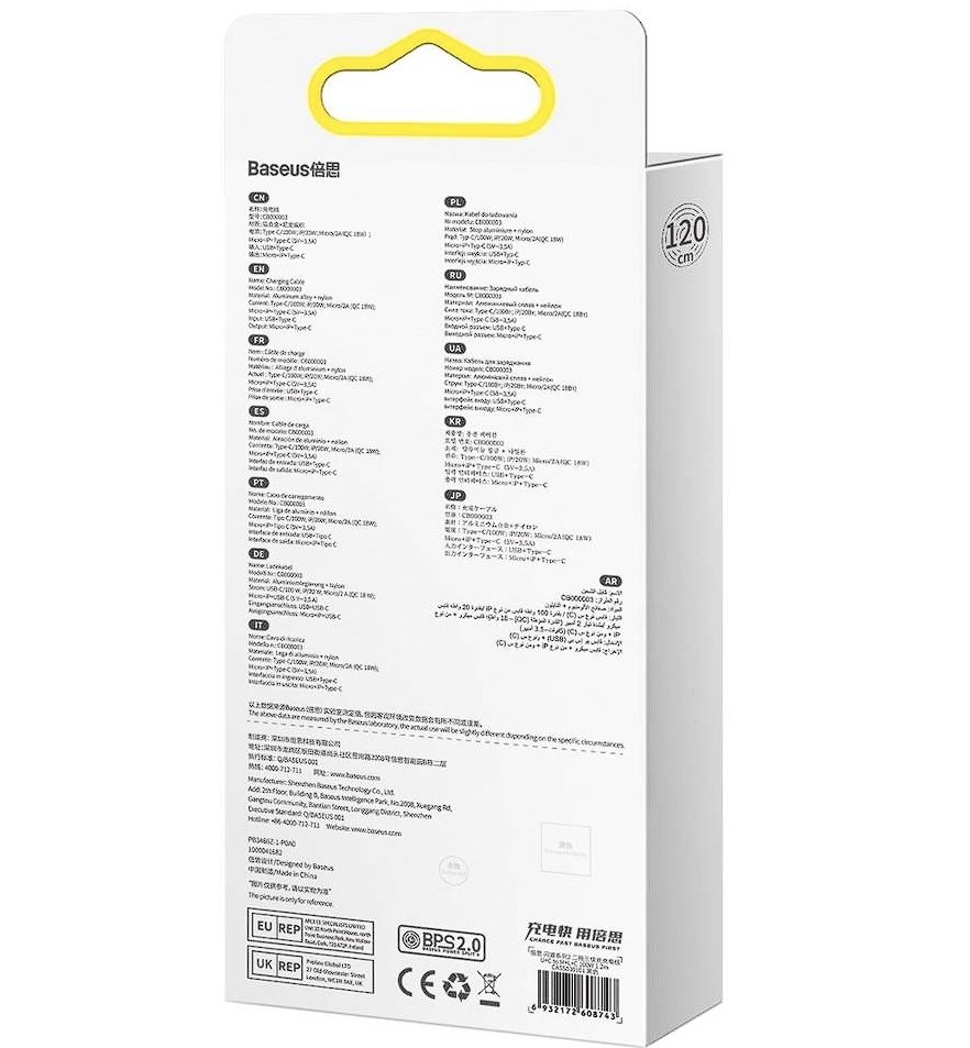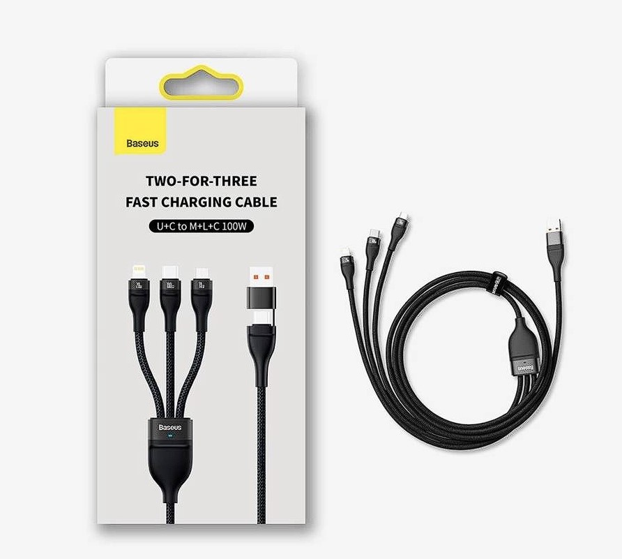 Cablu, Baseus Flash Series 2, cablu USB 3 in 1, USB-C / Micro USB / Lightning, 100 W, 1.2 m, negru