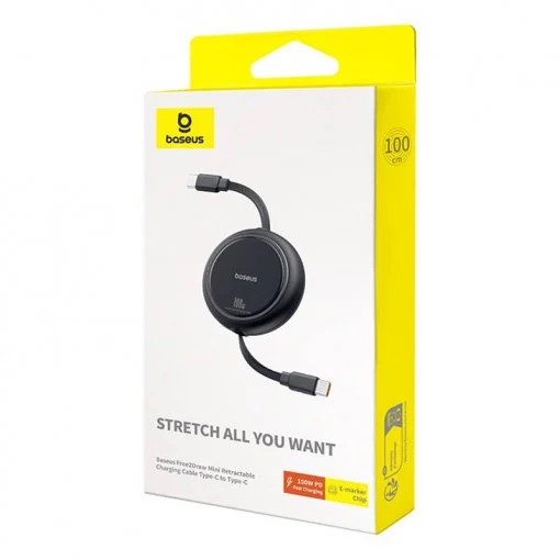 Cablu alimentare si date Baseus Free2Draw Mini, Fast Charging Data Cablept. smartphone, retractabil, USB Type-C la USB Type-C 100W, 1m, negru