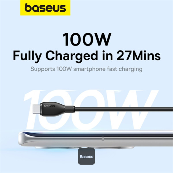 Cablu alimentare si date Baseus Pudding, interfata USB-USB-C, 100W, lungime 1.2m, negru