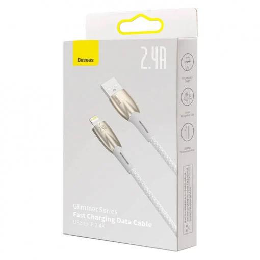 Cablu Date Incarcare Baseus Glimmer Usb La Lightning, Textil, Lungime 1M, Alb