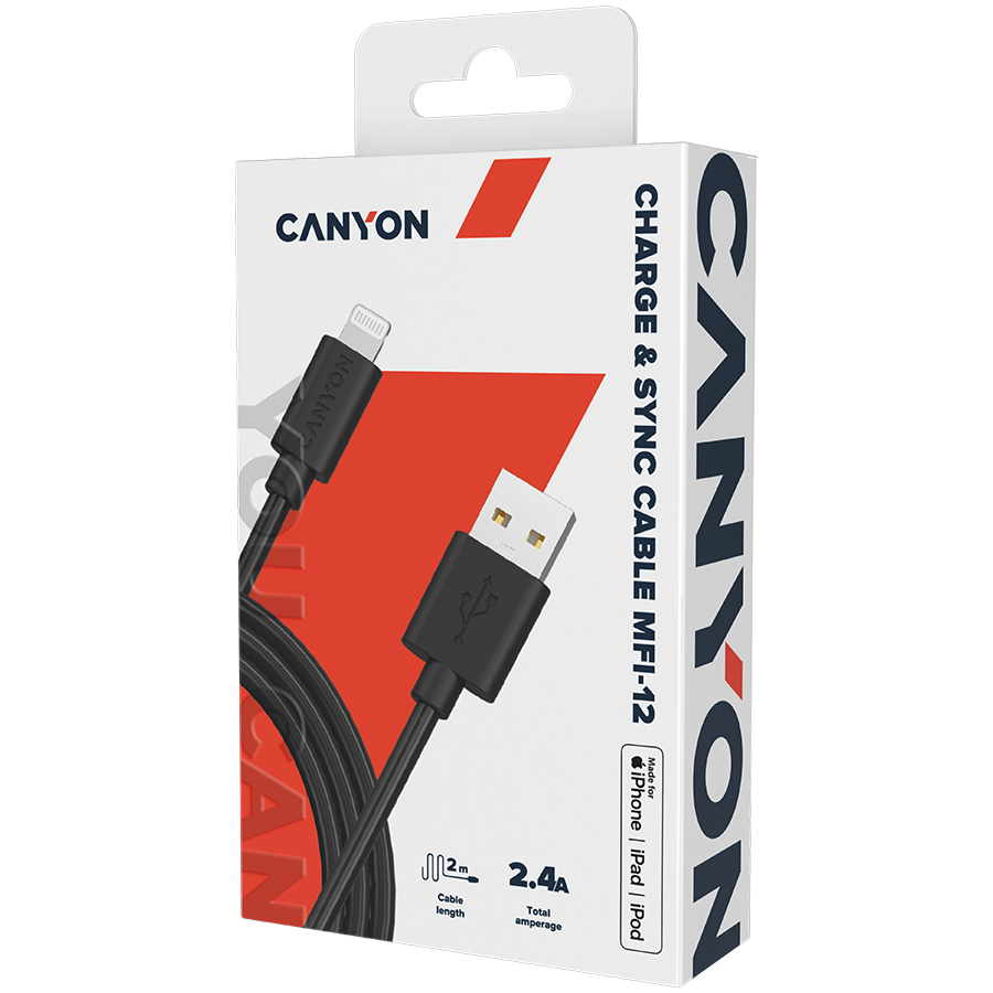 Cablu de date Canyon, MFI-12 Type-C to tip Lightning, 2m, Black (CNS-MFIC12B)