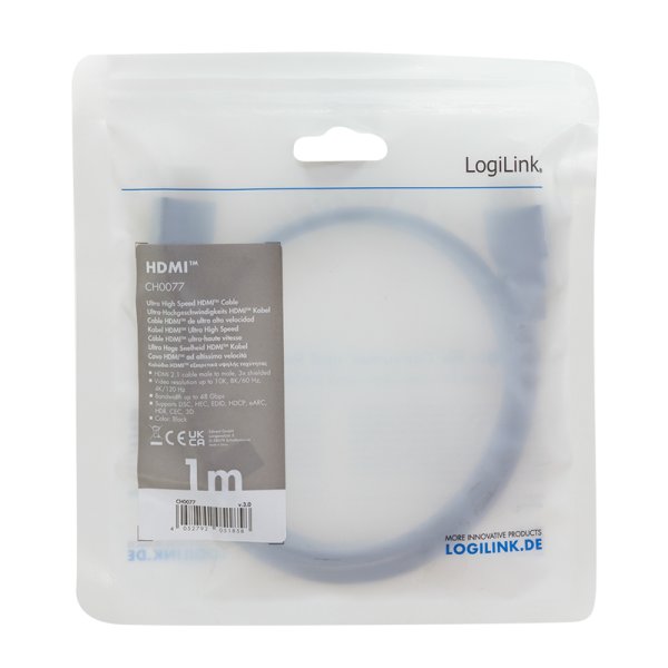 Cablu, LogiLink, CH0077, HDMI Tip A/HDMI Tip A, 48 Gbit/s, 1m, Negru