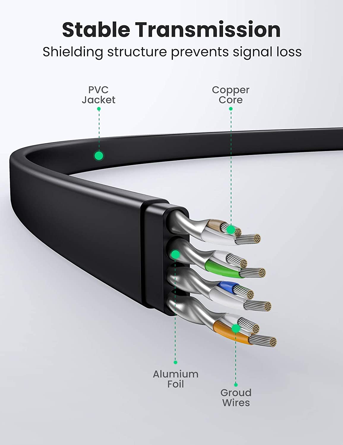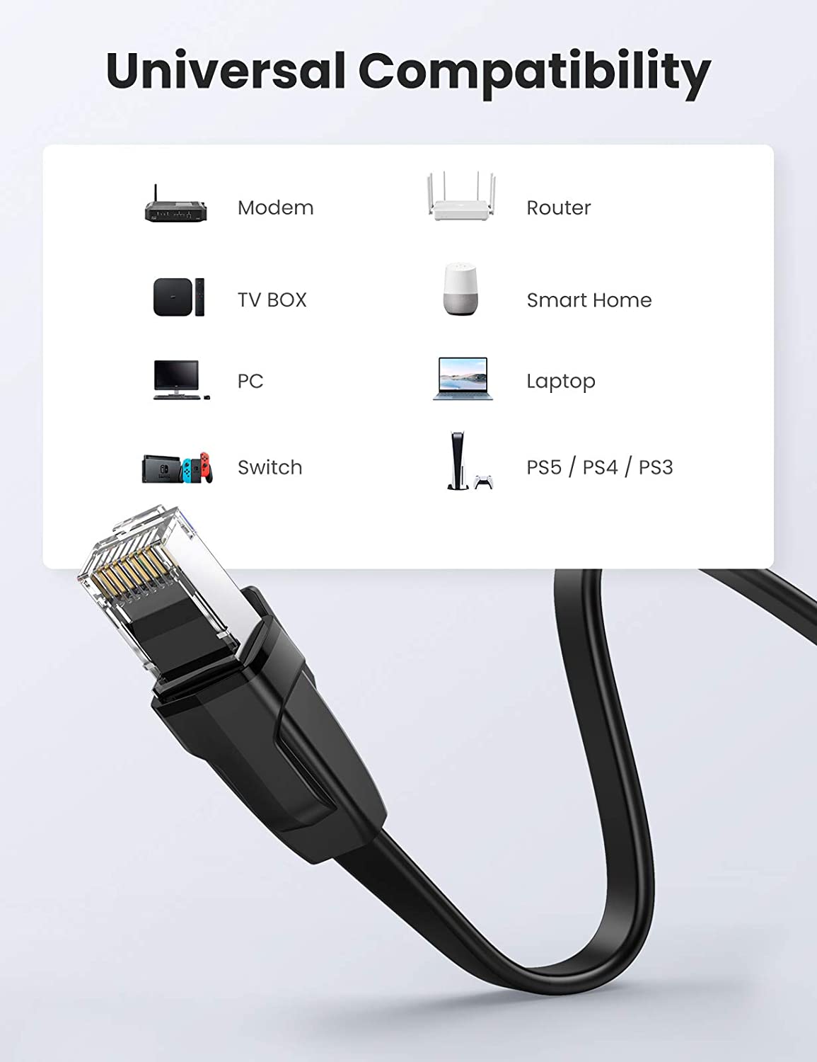 Cablu retea plat UGREEN NW134 Ethernet, Cat. 8, mufat 2xRJ45, U/FTP, lungime 2m, 40Gbps, Negru