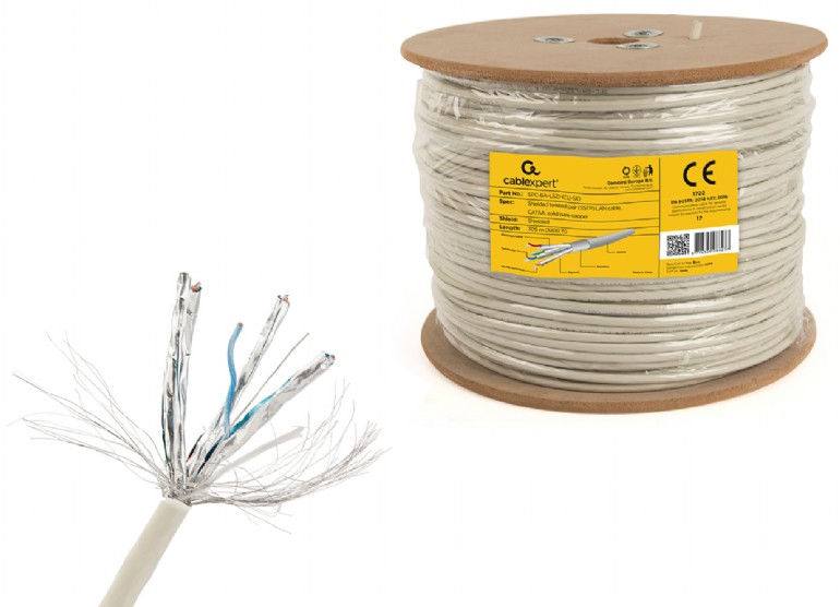 Cablu solid de instalare retea, Gembird, LSZH SFTP cat 5e, 305m, gri