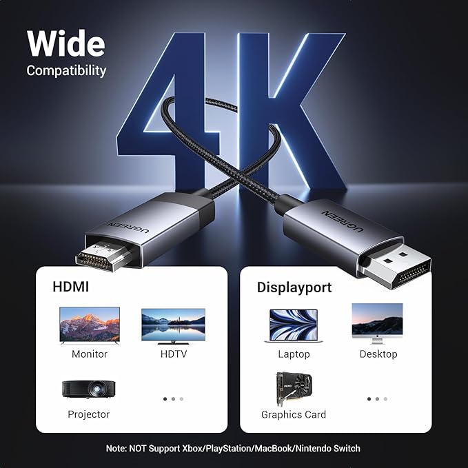 Cablu video UGREEN DP119, DisplayPort tata – HDMI tata, 4K, 60Hz, 3m, Gri