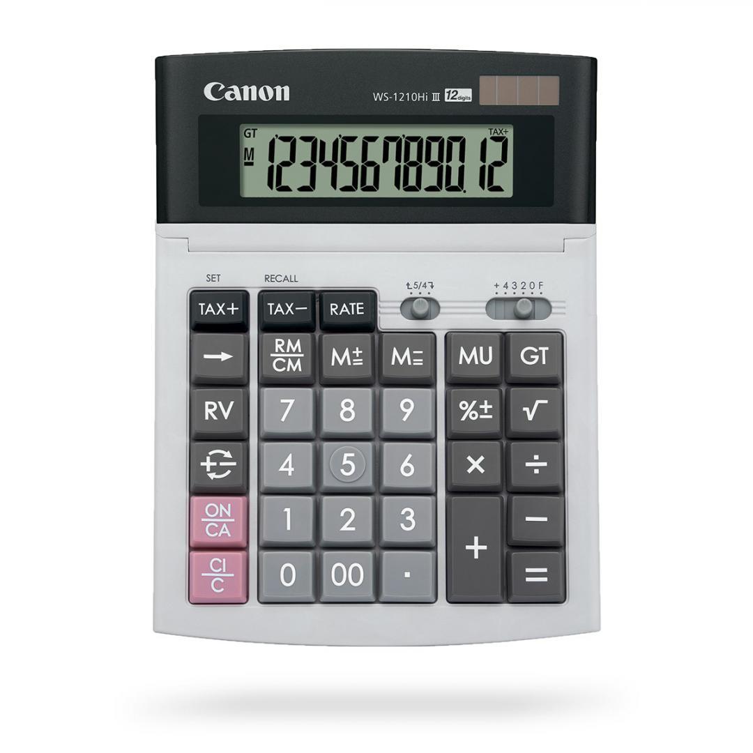 Calculator birou Canon WS-1210THB, 12 digiti, display LCD, alimentare solara si baterie, tastatura „it touch”.
