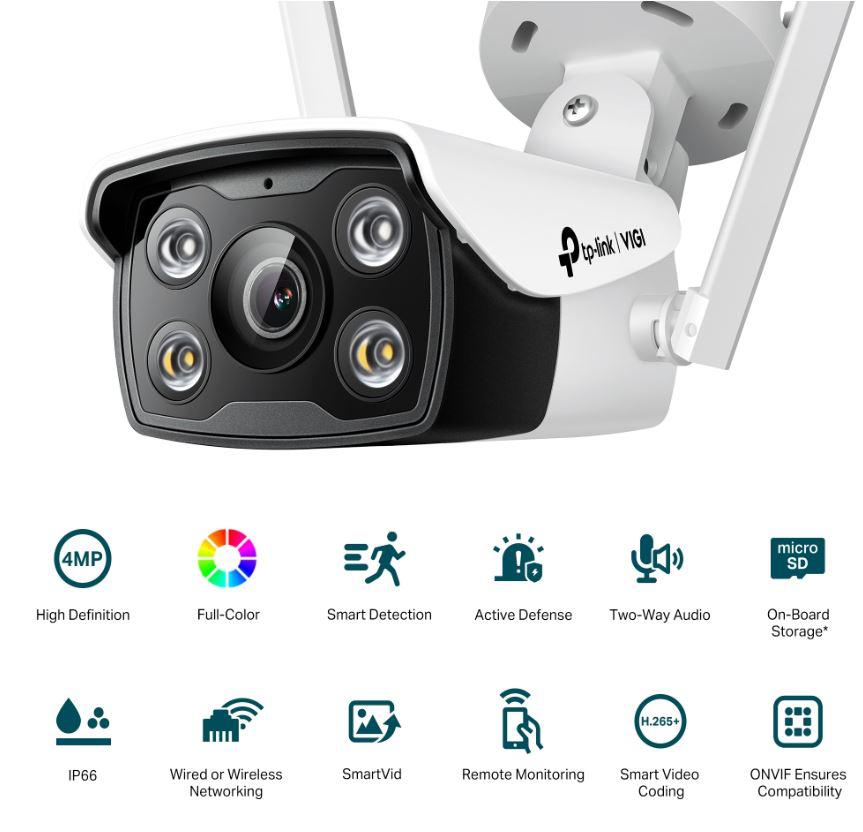 „TP-LINK VIGI 4MP Outdoor Bullet Network WIFI Camera,VIGI C340-W(4mm), 1/3″”