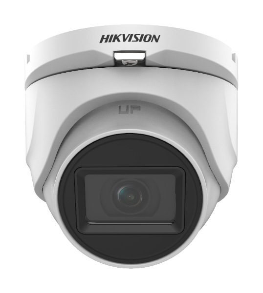 Camera supraveghere Hikvision TURRET DS-2CE76H0T-ITMFS(2.8mm); 5 MP; Audio over coaxial cable, microfon audio incorporat; 5 MP CMOS; rezolutie: 2560 (H) × 1944 (V)@20FPS; iluminare: 0.01 Lux@(F1.2, AGC ON), 0 Lux with IR; lentila: 2.8mm, distanta IR: 30metri, Smart IR, horizontal FOV: 85.5°, vertical FOV: 63.7°, diagonal FOV: 110.7°; Digital WDR/BLC/HLC/2D DNR/Global; camera 4 in 1 TVI/AHD/CVI/CVBS; carcasa metal; IP67; temperatura de functionare: -40 °C la 60 °C; dimensiuni: 82.6 mm × 90 mm × 79.37 mm; greutate: 289.5 g