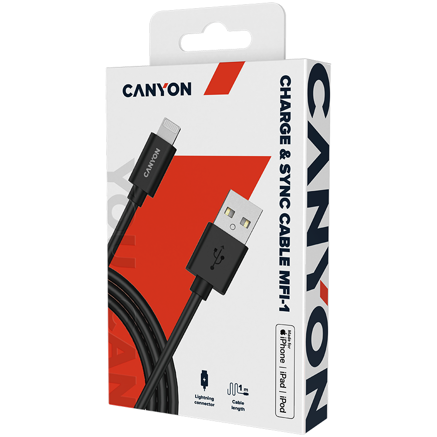 CANYON cable MFI-1 Lightning 12W 1m Black