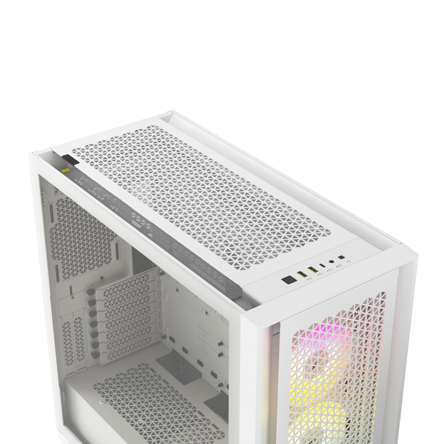 Carcasa Corsair iCUE 5000D RGB Airflow Mid Tower ATX, 3 ventilatoare incluse 120mm, 4x 3.5″ drive bays, 2x 2.5″ drive bays, dimensiune 520x520x245mm, ALB