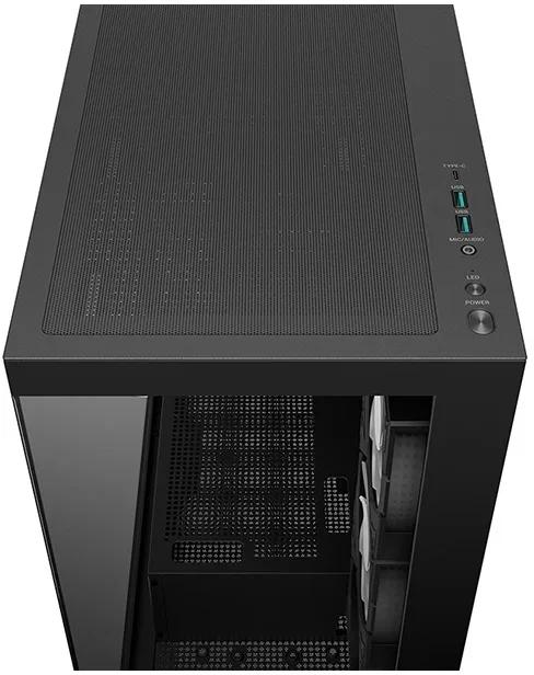 Carcasa Tempered Glass+ABS+SGCC, Sloturi Expansiune 7, Drive Bays: 2×3.5″ 2×2.5″, Ventilatoare Suportate: 10 (spate: 1x120mm sau 1x140mm, sus: 3x120mm sau 2x140mm, lateral: 3x120mm, jos: 1x120mm, invaluit in sursa: 2x120mm), Ventilatoare Incluse: 4 (spate: 1x120mm, lateral: 3x120mm), Format Placa De Baza Suportat: Mini-ITX, Micro-ATX, ATX, Lungime Maxima Placa Video: 410mm, Inaltime Maxima Cooler Procesor: 176mm
