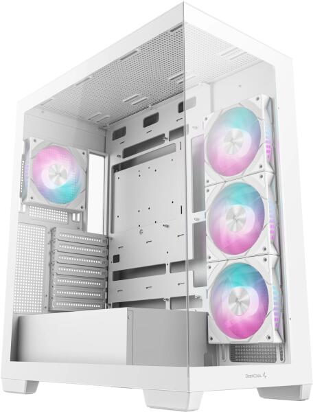 Carcasa DEEPCOOL CG580 4F Mid Tower ARGB ALB, Tempered Glass+ABS+SGCC, Sloturi Expansiune 7, Drive Bays: 2×3.5″ 2×2.5″, Ventilatoare Suportate: 10 (spate: 1x120mm sau 1x140mm, sus: 3x120mm sau 2x140mm, lateral: 3x120mm, jos: 1x120mm, invaluit in sursa: 2x120mm), Ventilatoare Incluse: 4 (spate: 1x120mm, lateral: 3x120mm), Format Placa De Baza Suportat: Mini-ITX, Micro-ATX, ATX, Lungime Maxima Placa Video: 410mm, Inaltime Maxima Cooler Procesor: 176mm